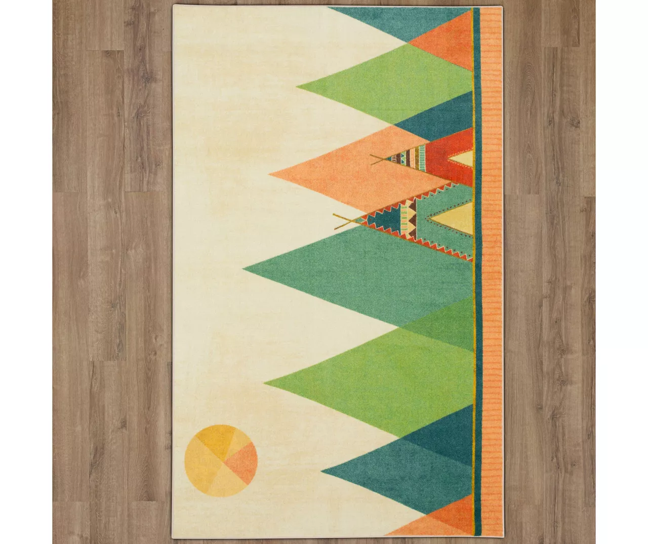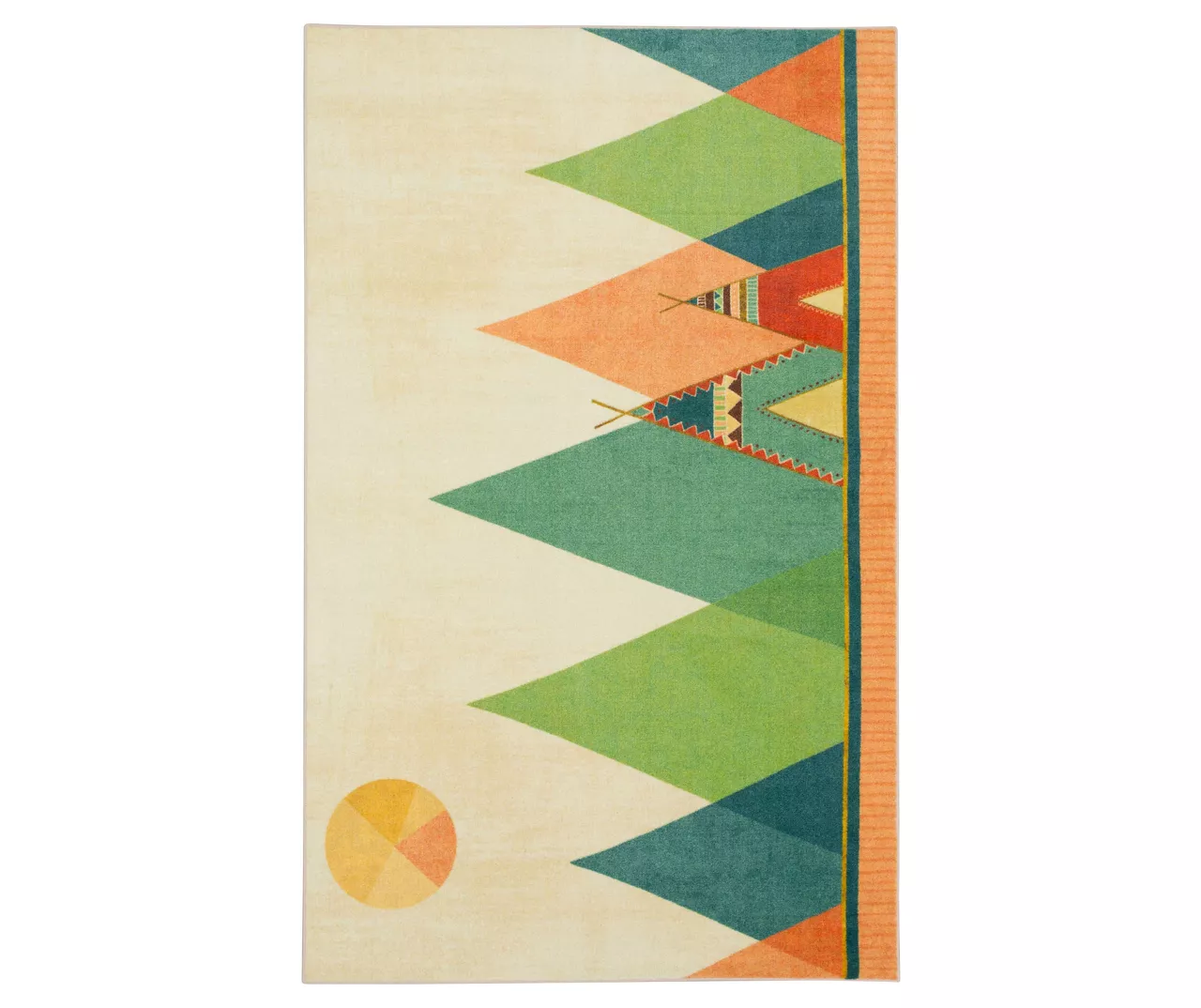 Add some Southwest-inspired style to your kids corner with the fresh and fun modern multi-color design of Mohawk Home’s Southwest Tent area rug. Blue, green, red, aqua, peach and beige colored triangular teepees align in this happy, horizontally designed area rug. Thoughtfully crafted in the U.S.A. utilizing Mohawk Home’s exclusive precision dye-injected printer, this rug is designed on a plush EverStrand™ tufted base made from premium recycled polyester. A non-skid latex backing helps to keep things in place, and the low pile is durably designed to easily work with doorways or furniture while withstanding everyday use.
