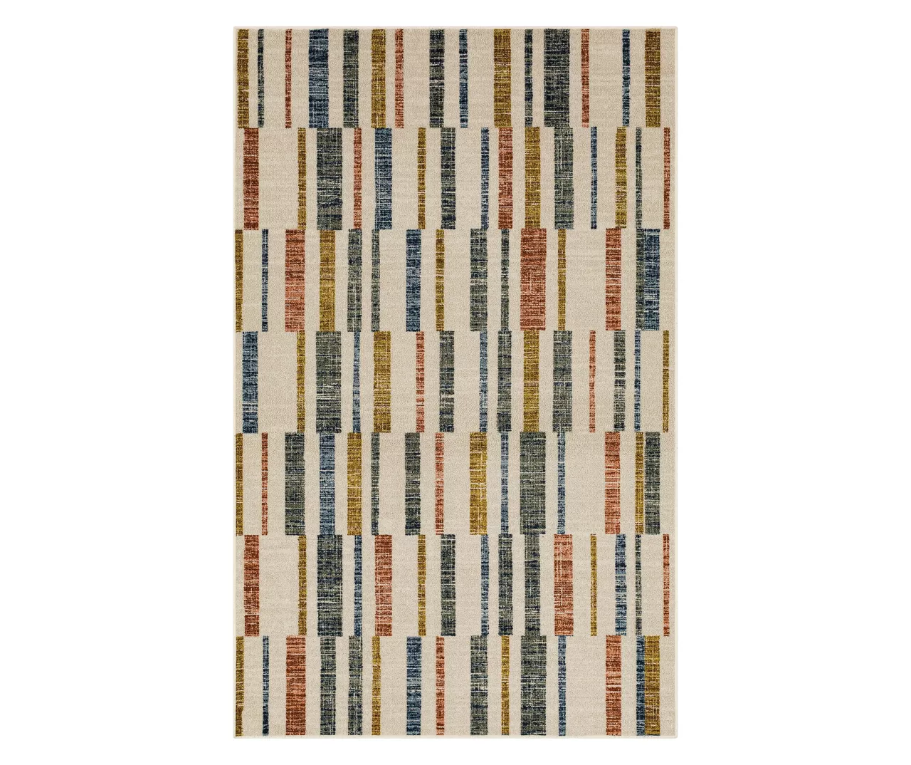 The Mohawk Home Tilton area rug features a modern color block design motif in a bold palette that is sure to complement any room. The low pile is created with Mohawk’s premium wear-dated nylon fiber for a soft touch and dependable durability. This rug is sure to make an elegant addition to a bedroom or other living space and the non-skid latex backing helps to keep things in place.