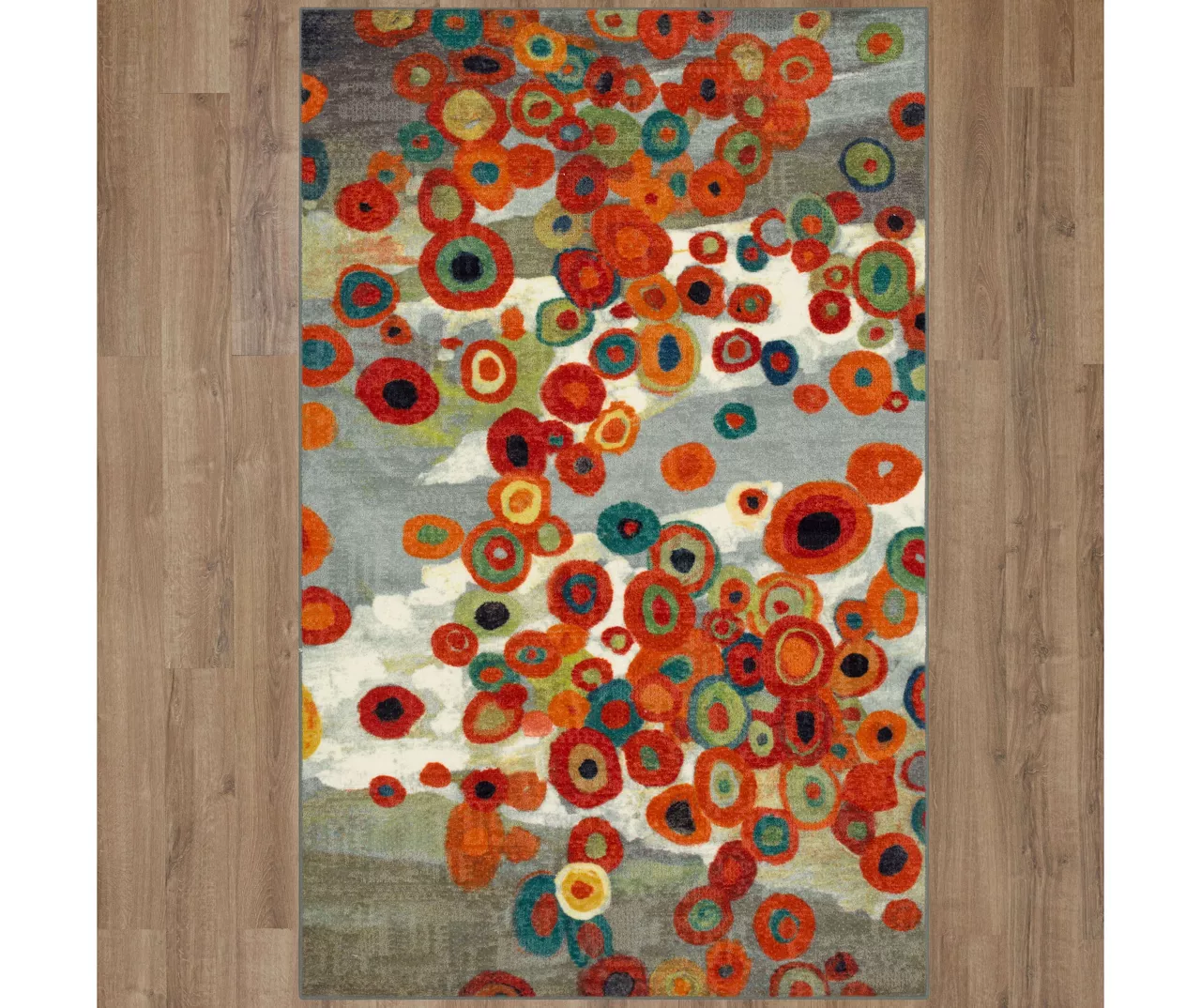 Brightly colored circles combine with a neutral background to create an asbtract floral-inspired design that will be the focal point of any space. The printed construction is extremely durable and vibrant for lasting enjoying and a spread of modern style in any room in your home.