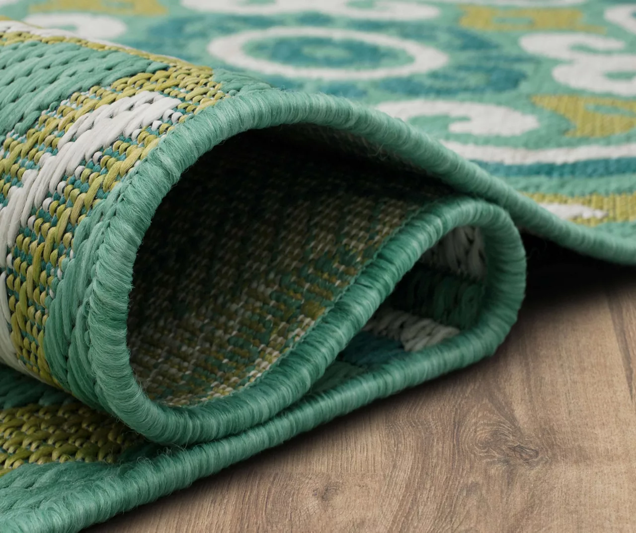 The Mohawk Home Waterside area rug features globally inspired bohemian design in versatile color palette combinations of teal, turquoise and white. Made with all-weather olefin polypropylene yarn, this flatwoven area rug offers a detailed design, soft feel and dependable durability that works in both indoor and outdoor spaces. The resilient surface fibers are resistant to stains, fading and moisture, making it a great choice for high-traffic areas.