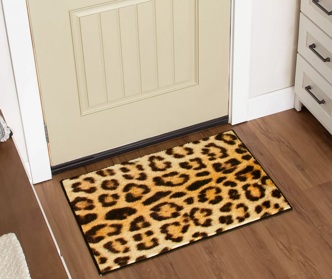 Trendy and wild design come to life in the animal print motif of Mohawk Home’s leopard print area rug. The leopard print pattern is fabricated in nautral shades of golden yellow and bold black to create an ideal addition to your space. Thoughtfully crafted in the U.S.A. utilizing Mohawk Home’s exclusive precision dye-injected printer, this rug is designed on a plush EverStrand™ tufted base made from premium recycled polyester. A non-skid latex backing helps to keep things in place and the low pile is durably designed to easily work with doorways or furniture while withstanding everyday use.